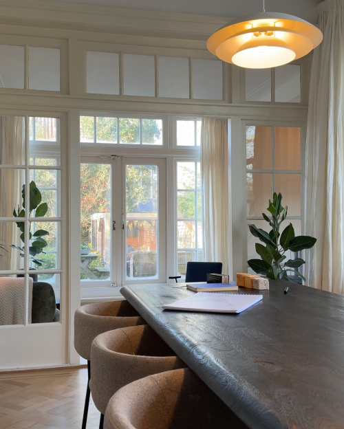 “Als je een monument renoveert, is het belangrijk dat je je best doet om de originele staat en het karakter van het pand te behouden.” vertelt Nikki. “Het helpt als je dit laat zien aan de gemeente en andere specialisten die meehelpen. Als je je samen inzet, kom je bijna altijd tot oplossingen. Bij zo’n monumentaal pand mag je als huiseigenaar niet alles doen wat je wil. Zo moest bij één pui het originele historische glas blijven zitten. Dat glas isoleert slecht, wat wij zelf erg jammer vinden. Maar al met al zijn we enorm tevreden met wat we allemaal hebben kunnen doen.”