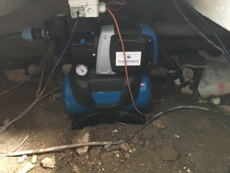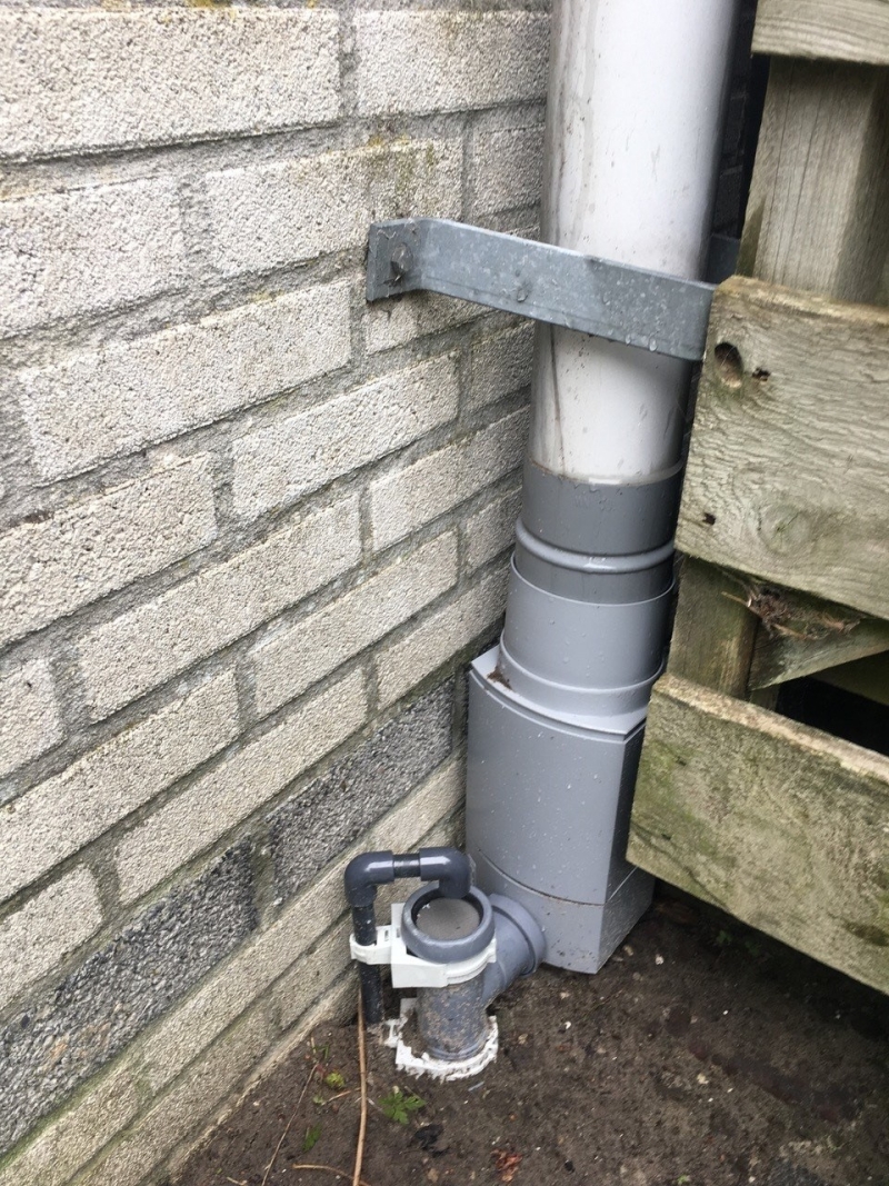 Maar hoe werkt het nou precies? Het systeem bestaat uit drie onderdelen: een waterzak, filter en een pomp. Het water wordt opgevangen via het dak. In de regenpijp wordt het water gefilterd. Zo stroomt het schoon de waterzak in. “Wij hebben de zak in de kruipruimte. Hier kunnen we 4.500 liter water in opslaan. Ook de pomp zit in de kruipruimte. Zo op het oog zie je dus amper iets van het systeem”, benoemt ze. “Alleen het filter, want op die plek is de regenpijp iets dikker.”