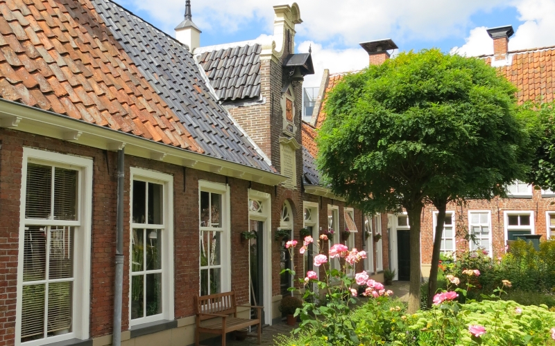 Waar ooit armen en zieken, gekken en pestlijders werden opgevangen, bewoont nu een select aantal bevoorrechte Groningers de 40 woningen van dit prachtige hofje. Maar het wonen in een monumentaal pand brengt natuurlijk de nodige duurzame uitdagingen met zich mee. “In de 16e eeuw stond duurzaamheid natuurlijk nog nergens op de agenda. Dus als je bij zo’n pand vloeren, dak of ramen wilt isoleren, heb je wel een uitdaging. Zeker omdat je bij een rijksmonument de buitenkant niet mag veranderen. Je legt er niet zo even een partij zonnepanelen op”, vertelt Douwe van der Zee, al jarenlang voogd van het Gasthuis.