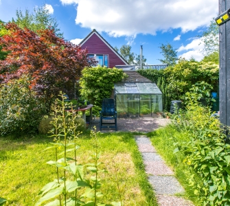 Vervang je tegels door groen. Een groene tuin geeft verkoeling en regenwater kan er gemakkelijker in wegzakken.